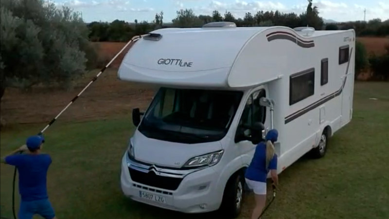 Sistema innovador para una limpieza completa y segura de barcos, paneles solares , caravanas y otros vehículos grandes.